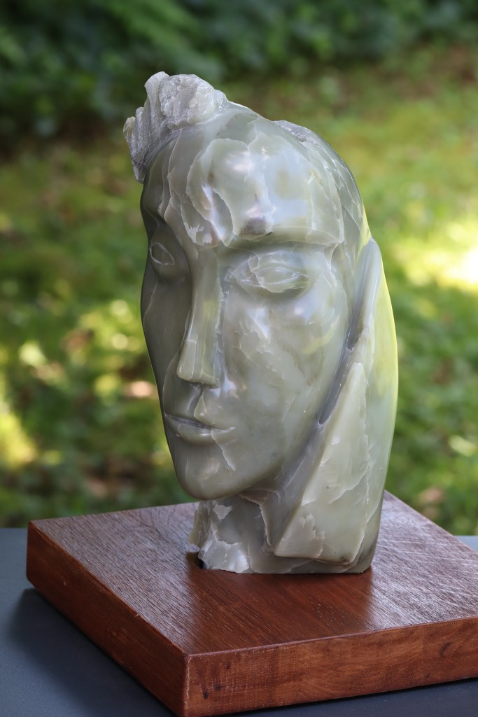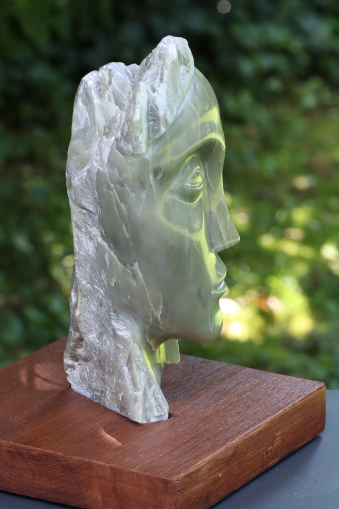 Cette stéatite est très difficile à sculpter car très fragile. Les gouges ou ciseaux et même la lime peuvent casser la pierre le long de ses nombreuses fissures
