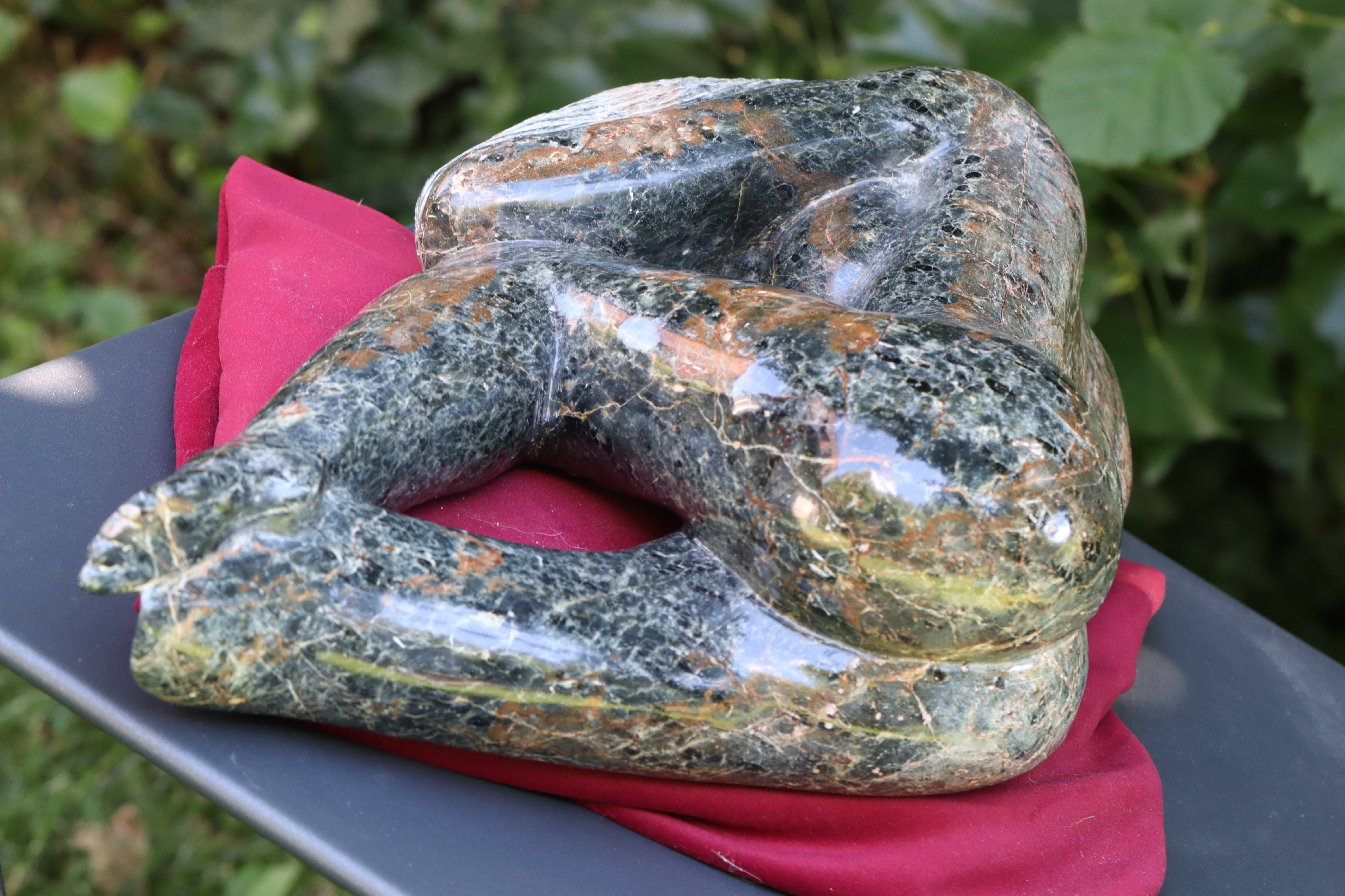 Cette stéatite grise anthracite est magnifique avec ses veinages marrons et blancs.